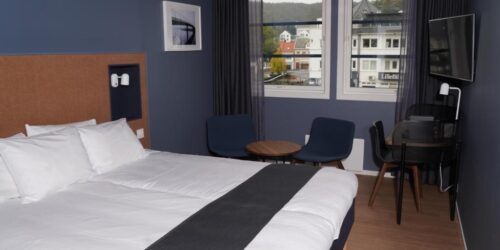 Alle rommene på Fjordhotell Maritim har skrivebord og te- og kaffekoker. De fleste rommene på Fjordhotell Maritim gir utsikt over elven, og flere av rommene i øverste etasje har egen balkong.