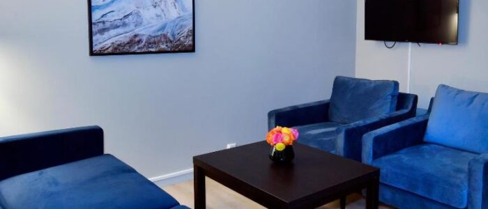 De lydisolerte rommene på Thon PartnerHotel Baronen har flatskjerm-TV, skrivebord og moderne bad med dusj.