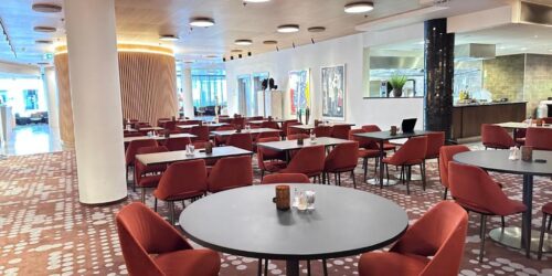 Brasserie Normandie tilbyr internasjonal mat og retter fra Sunnmøre, som en omfattende fiskemeny. Galleri Flora serverer drikkevarer og småretter.