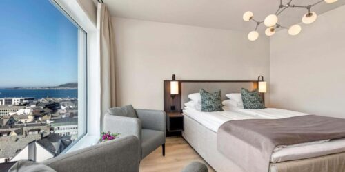 Flesteparten av rommene på Scandic Parken tilbyr utsikt over Ålesund og de nærliggende øyene. Noen av rommene har skrivebord eller sittehjørne.