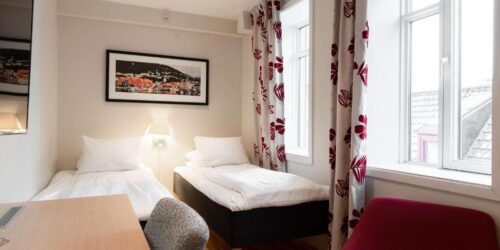 Hotellet ligger 300 meter fra Torgallmenningen. Bryggen og Fisketorget er under 8 minutters gange unna.