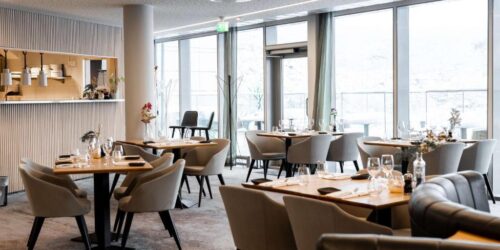 Frokostbuffeten på hotellrestauranten Aquila omfatter flere enn 100 ulike matvarer med fokus på økologiske produkter. Roast Restaurant & Bar i toppetasjen tilbyr sjømat fra Nordsjøen og et utvalg av grillet kjøtt.