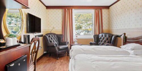 De vakkert innredede rommene på Best Western Lægreid Hotel har tregulv, skinnstoler og skrivebord. De romslige suitene har i tillegg sittehjørne.