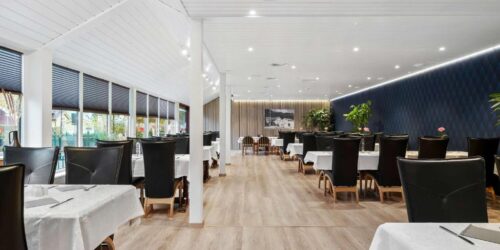 Lægreid Hotel serverer hjemmelagde retter i spisesalen.