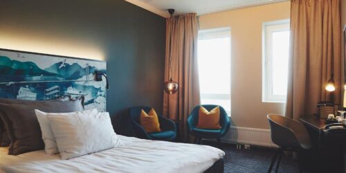 Alle de moderne rommene på Stord Hotel har tregulv, skrivebord samt et bad med dusj og hårføner. Gratis WiFi er tilgjengelig i alle fellesområdene.